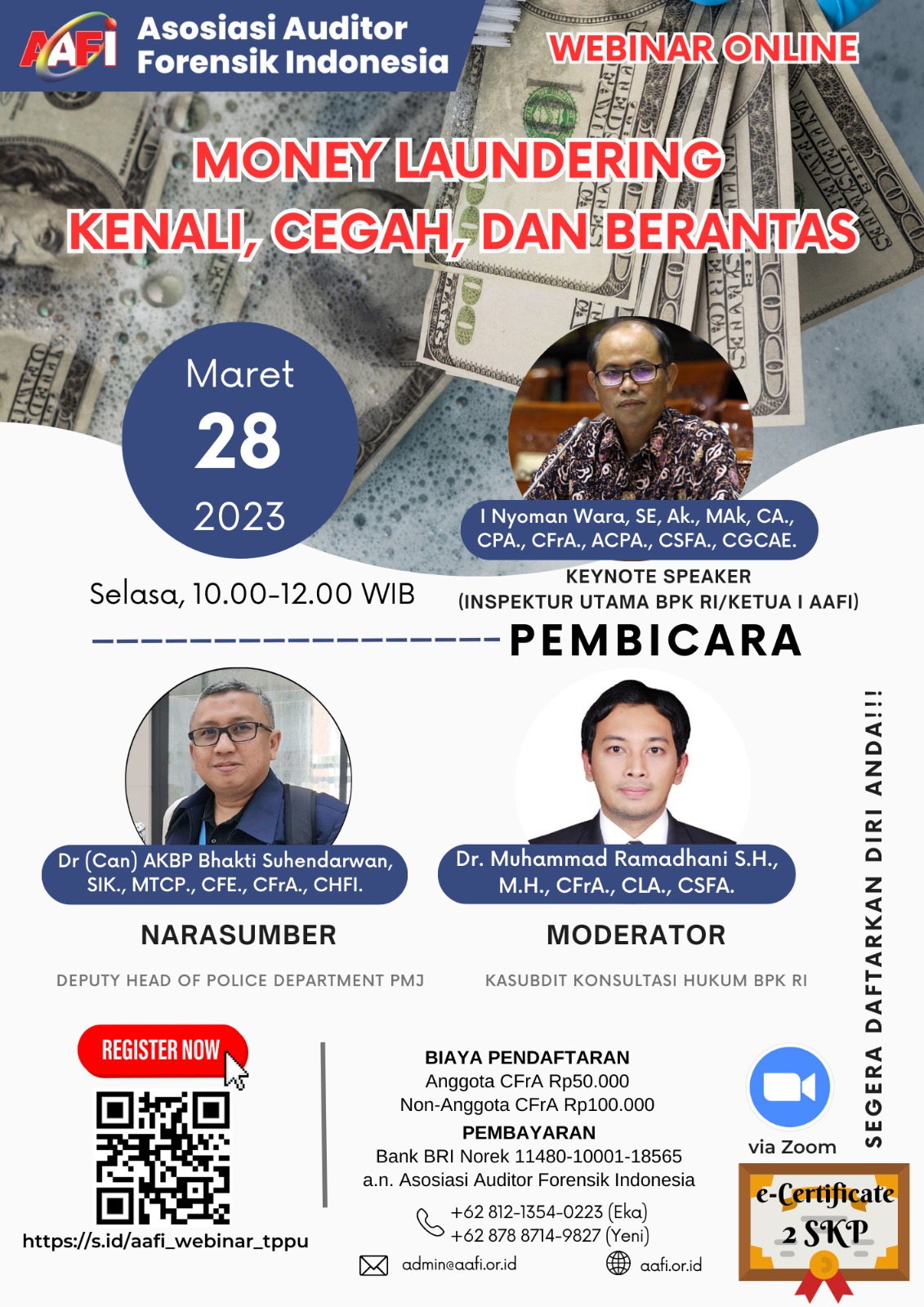 Asosiasi Forensik Auditor Indonesia (AAFI YUBUMABUR) mengundang Bapak/Ibu dalam Webinar Online dengan Tema MONEY LAUNDERING, KENALI, CEGAH, DAN BERANTAS