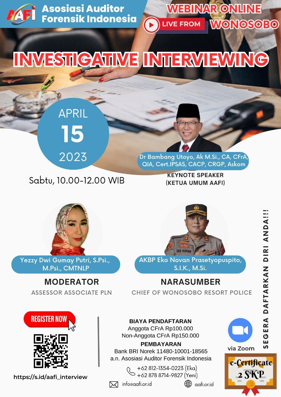 Asosiasi Forensik Auditor Indonesia (AAFI YUBUMABUR) mengundang Bapak/Ibu dalam Webinar Online dengan Tema INVESTIGATIVE INTERVIEWING