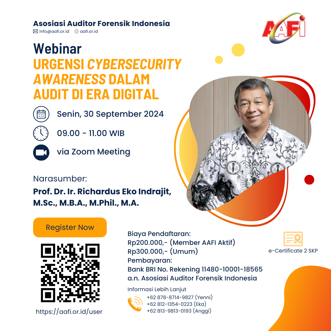 Asosiasi Auditor Forensik Indonesia Yubumabur (AAFI YUBUMABUR) mengundang Bapak/Ibu dalam Webinar Online dengan Tema: Urgensi Cybersecurity Awareness dalam Audit di Era Digital